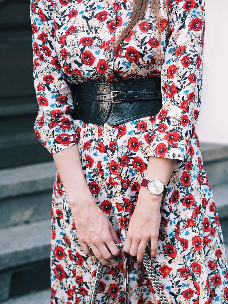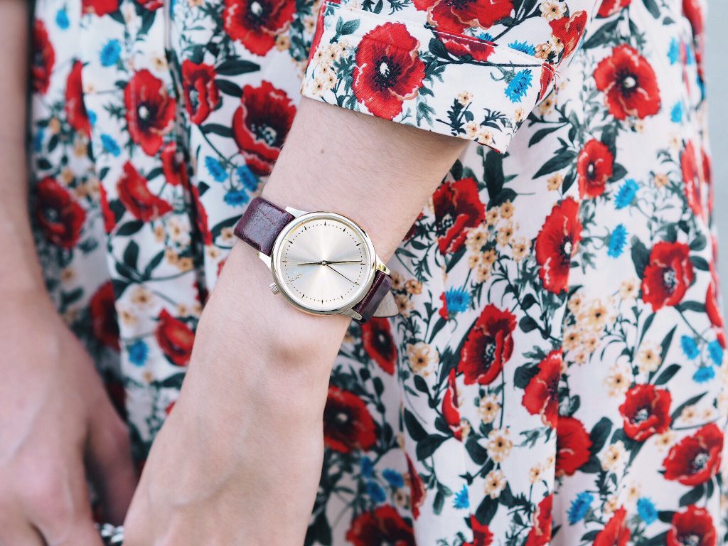 Da das Event erst um 18 Uhr begann, nutzen wir die Zeit um etwas durch Berlin zu schlendern und mich im KaDeWe von der neuen Herbst-/Winterkollektion inspirieren zu lassen. Dabei trug ich ein schon herbstlich angehauchtes Outfit – ein bodenlanges mit Blumen bedrucktes rotes Kleid mit meiner geliebten Tasche von Gucci. Um das Outfit farblich abzurunden trug ich meine neue Uhr von Komono (Modell: Estelle Burgundy) und meine cognacfarbenen Römersandalen. Wie ihr vielleicht wisst bin ich von allem angezogen was bordeauxrot ist. Durch den goldenen Rahmen und das Armband, welches aus echtem Leder ist, wirkt die Armbanduhr noch hochwertiger. Komono ist eine belgische Marke die nicht nur Uhren, sondern auch Brillen/Sonnenbrillen herstellt. Die Auswahl fiel mir aufgrund der Vielfalt an Produkten die mir zusagten, nicht leicht. Jedes Modell, was Komono in ihrem Online-Shop anbietet, hebt sich individuell ab.